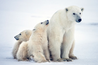 北极熊通常在元旦左右产下盲的、无毛的幼崽,体重约为一磅。由于母乳中脂肪含量高,幼崽在春天会长到出生体重的约 20 倍。它们在 2 月至 4 月之间离开巢穴,具体时间取决于地点和温度。