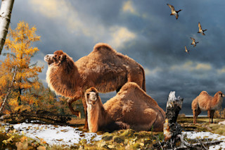 这只九英尺高的骆驼可能侧向咀嚼桦树叶,其张开的脚在半年的黑暗和半年的极昼中艰难地跋涉于雪地。对我们大多数人来说,这是一个奇怪的景象,但对雷布钦斯基来说,这更进一步证明,过去北极地区气候更温暖,树木繁茂,生物多样性更高。