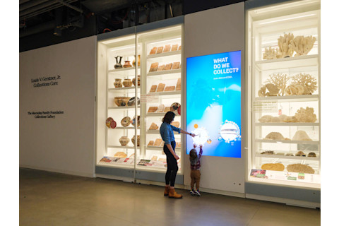 虽然博物馆的藏品是空间的基础,并且确实是某些展览的焦点,但吉尔德中心对过去的博物馆提出了一个微妙的反驳,过去的博物馆试图通过它们所包含的物品来解释世界。新的展厅表明,真正的故事不在于博物馆收藏的物品,而在于这些物品之间的联系。对连接的强调也延伸到博物馆的藏品本身,其中一些现在被安置在吉尔德中心墙壁沿线的玻璃前面房间里,让游客可以窥视其中。