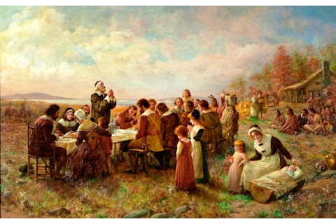 (图片来源:《第一次感恩节》,1914 年,Jennie Augusta Brownscombe,公共领域)