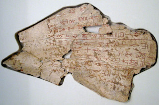 至于中国,现存最古老的文字客观上比埃及和美索不达米亚的更酷。它们来自占卜和祭祀祖先的场合,可以追溯到公元前 1200 年左右,在安阳遗址——商朝的都城。铭文装饰着盛放祭祀给已故祖先的青铜器和甲骨文:上面刻有文字的龟甲和牛肩胛骨。