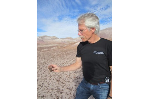 在尘土飞扬的地面上散落着一片在 2.15 亿年前突然枯萎死亡的湿地森林的残骸。保罗·奥尔森(Paul Olsen)指向散落在各处的白色、红色和黑色的石英碎块。“你看它呈绳状了吗?”他问道。他举起一块。“看起来就像有人把小绳子剪碎了,然后扔在这里。”奥尔森认为,这些散落的岩石标志着一场大规模灭绝的时刻,这场灭绝事件摧毁了北美许多物种。他想找出引发这场灭绝的灾难。但当我和他一起站在烈日下时,我却看不出他那双训练有素的眼睛能轻易察觉到的微妙线索。当我环顾四周的岩石时,我根本看不到他所说的绳状、圆柱形。“奥尔森是一位白发苍苍的古生物学家,来自纽约的 Lamont-Doherty 地球观测站。他带我来到了 Petrified Forest National Park 的一个神秘地点,这不是公园里那个以两英尺宽的石化木闻名的区域,而是大多数游客从未留意过的区域。我们周围被水侵蚀的荒地呈浅淡、贫瘠的米色、粉红色和白色粘土层条纹,只能支撑几簇草。除了数千块散落的石英碎块,地面上几乎寸草不生。在盯着这些岩石看了 10 分钟后,我脑海中的某样东西终于豁然开朗——就像那些让你盯着一堆点而不聚焦,突然间一个飞船或卡通人物的形状就会跳出来的脑筋急转弯一样。我瞬间意识到,这些岩石大多数确实是圆柱形的——有些是扁平的,有些是分叉的,有些是弯曲的,有些是粘在一起的——但大多数,无可否认,都是圆柱形的。奥尔森说,这些岩石隐藏着一个巨大的谜团。