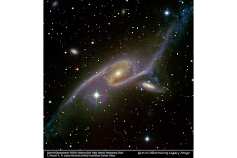 这张图像的另一个很酷之处在于,目标星系实际上是由高中生为一场比赛提出的!澳大利亚 Gemini 天文台每年都会组织这项比赛,旨在为巨型望远镜找到科学上重要且美观的天文目标。2010 年,悉尼女子高中天文俱乐部获胜(配图)。我的朋友Travis Rector随后组织了观测并制作了这张令人难以置信的图像。2011 年的新比赛也已经开始。如果你认识一些想有机会操作 8 米望远镜的高中生,那么把他们送到比赛网站!想象一下,将这个作为你大学申请的一部分。图片来源:悉尼女子高中天文俱乐部,Travis Rector(阿拉斯加大学安克雷奇分校),Ángel López-Sánchez(澳大利亚天文台/麦格理大学)以及澳大利亚 Gemini 天文台;NASA/CXC/SAO/M.Machacek, ESO/VLT, NASA/JPL/Caltech