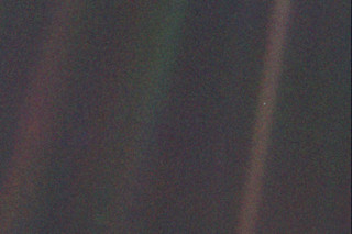 “旅行者1号”和“旅行者2号”双胞胎探测器在相隔几天的时间里发射升空,它们被派往执行互补的任务,勘测外层气态巨行星。萨根是“旅行者号”任务的关键成员,在发射前很久,他就要求“旅行者1号”拍摄地球的照片,作为计划中的“太阳系全家福”系列的一部分。然而,探测器团队担心转向太阳会烧坏“旅行者1号”昂贵的相机。经过大量深思熟虑和规划,萨根最终说服了他们,地球的照片自然也在拍摄计划之内。这最终促使萨根写下了这句永恒的引言: