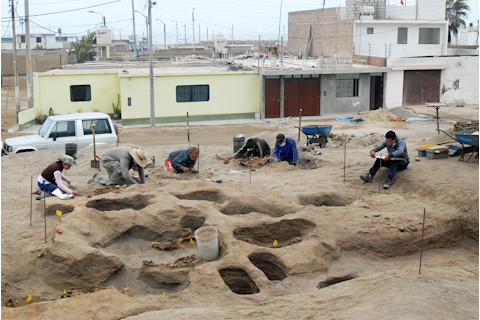 该遗址距离太平洋仅千英尺,毗邻一个现代渔村。该地点距离特鲁希略(Chan Chan)不远,特鲁希略在550年前是奇穆帝国古都,也是前哥伦布时期美洲最大的城市之一。(来源:John Verano)