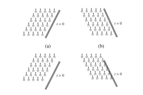 两个`数学`模型`之间`存在`一些`关键`差异`。`与`传统`品脱`杯`壁`相比`,`反`品脱`杯`壁`附近`聚集`了`更多`的`气泡`。`为`了`理解`原因`,`研究`人员`考虑`了`啤酒`刚`倒入`杯`中`时`气泡`的`运动`,`在`健力士`瀑布`效应`显`现`之前`。`品脱`杯`的`杯`壁`向`外`倾`斜`,`所以`当`气泡`上升`时`,`它们`会`远离`杯`壁`(`参见`右`侧`图`a`)。`反`品脱`杯`的`杯`壁`向`内`倾`斜`,`所以`当`气泡`上升`时`,`它们`最终`会`撞`到`杯`壁`(`图`b`)。`你`可能`还`记得`,`气泡`在`移动`时`会`带动`液体`。`这意味着`当`杯`子`中心`有`很多`气泡`时`(`如`品脱`杯`),`中心`的`拖`曳`力`也`会`更`大`,`这`会`形成`中心`柱`,`将`边缘`的`液体`向下`推`,`进而`产生`健力士`瀑布`效应`。`但`在`反`品脱`杯`中`,`研究`人员`的`模拟`显示`,`边缘`较高的`气泡`密度`会`使`中心`柱`的`拖`曳`力`减`小`,`并`允许`靠近`壁`的气泡`向上`流`动`。`根据`该`模型`,`将`健力士`啤酒`倒入`反`品脱`杯`应该`会`抵消`气泡`下沉`的`效应`。`现在`,`只`剩下`通过`实验`来`验证`这个`结论`了`。`也许`应该`在`爱尔兰`酒吧`而不是`实验室`里`进行`实验`……