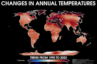 正如我在本系列第一部分中提到的,2023年打破了自19世纪初有记录以来的最温暖年份的最高纪录。根据NASA的数据,2023年6月至12月的每个月都成为有记录以来最热的月份,其中7月是有记录以来最热的月份。此外,还有一些离谱的怪象——包括一个异常的急流,其波浪状、环状和漩涡状的模式有助于锁定严酷的热浪。