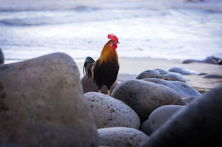 这些游客云集的海滨小镇充满了野鸡。它们在墓地里漫步,在海滩上昂首阔步,在餐馆露台上繁忙的餐桌下啄食残羹剩饭。关于这些鸟的传说比比皆是,包括有一群鸡是搭乘泛美航空的飞机来的,还有一些鸡被培育成多长了脚趾。但除了把我们吵醒,它们还有什么好处吗?