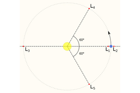 如果你有一个大天体(比如太阳)被一个较小的天体(比如地球)环绕,那么在太空中就存在一些点,如果你把一个更小的物体(比如小行星)放在那里,它就会留在那里。通常,如果你把这个较小的物体放在某个随机位置,这两个天体的引力会改变它的路径,使它的轨道不稳定。但是这五个特殊的地方,被称为拉格朗日点,是稳定的。好吧,有点。其中两个是稳定的,也就是说如果你把一个物体放在那里,即使你轻轻地推它,它也会倾向于留在那里——把它想象成平桌上的一个小凹陷。把弹珠放在那里,即使你稍微推一下,它也会留在那里。它会回到凹陷的中心。在这个图中,它们是 L4 和 L5 点。另外三个点(L1、L2 和 L3)只要没有任何东西扰动位于其中的物体,它们就是稳定的;如果你确实推动了在那里运行的物体,它就会倾向于继续移动。把这些点想象成桌子上的一个凸起,你可以在那里勉强平衡一个弹珠。它会一直待在那里,直到你推它,然后它就会滚走。如果你想在聚会上给人留下深刻印象,这叫做不稳定平衡。无论如何,第一个真实世界(真实宇宙?)的例子是在 1906 年发现的,当时在木星的 L4 点发现了一颗小行星,在其轨道前方 60°。它被命名为阿基里斯,这开启了以特洛伊战争中的人物命名它们的传统(木星前方的行星以希腊人命名,L5 点后方的行星以特洛伊人命名)。从那时起,火星和海王星也发现了特洛伊小行星。2010 TK7 位于地球的 L4 点,是第一颗被发现的地球特洛伊小行星。由于这个点比地球提前 60°,从我们的角度来看,任何在那里的物体在白天(或黄昏)都会出现,这使得它很难被发现。而且它也不仅仅是停留在 L4 点。还记得弹珠类比吗?如果你戳一下弹珠,它会移动,但最终会回到凹陷的底部。这是由于与桌面的摩擦。但在太空中没有摩擦,L4 和 L5 点的物体可能会围绕这些点移动,在某种意义上是绕着它们运行。从技术上讲,它们被称为利萨茹轨道(发音为“LEE-sa-jzoo”),并且可以长期稳定,尽管实际轨道的形状可能会改变。
